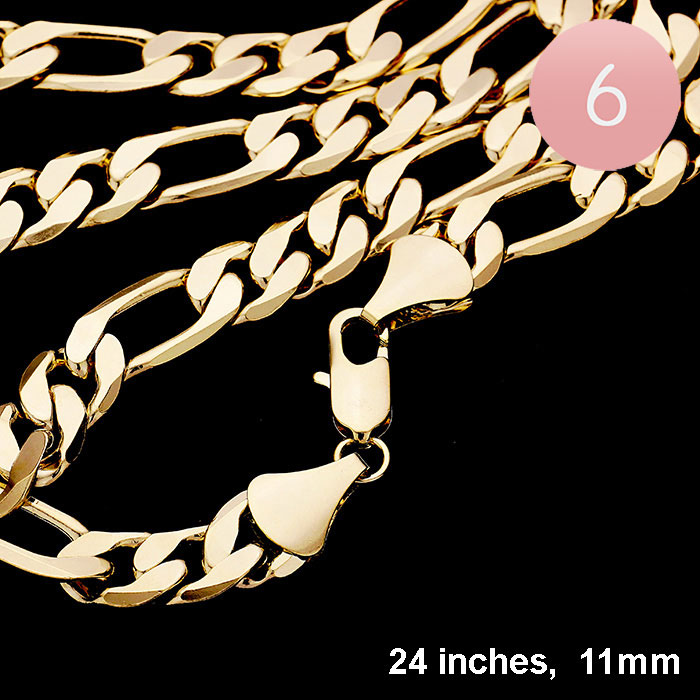 6PCS - 24 INCH, 11mm Gold Plated Figaro Chain Metal Necklaces