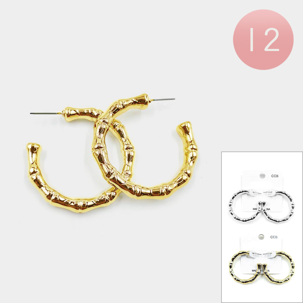 Details • Size : 1.5" X 1.5" • Post Back • Elevate your style with this set of bamboo-inspired hoop earrings. Featuring a textured design that blends modern and classic elements, these hoops add bold character and effortless charm to any outfit, perfect for both casual and dressy occasions.