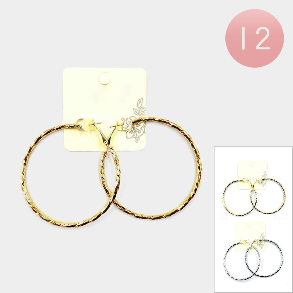 Details • Size : 2.4" X 2.4" • Omega Back • Elevate your accessory collection with this set of classic textured hoop earrings. Designed for timeless appeal, these lightweight hoops bring effortless style and versatility to both everyday looks and special occasions.