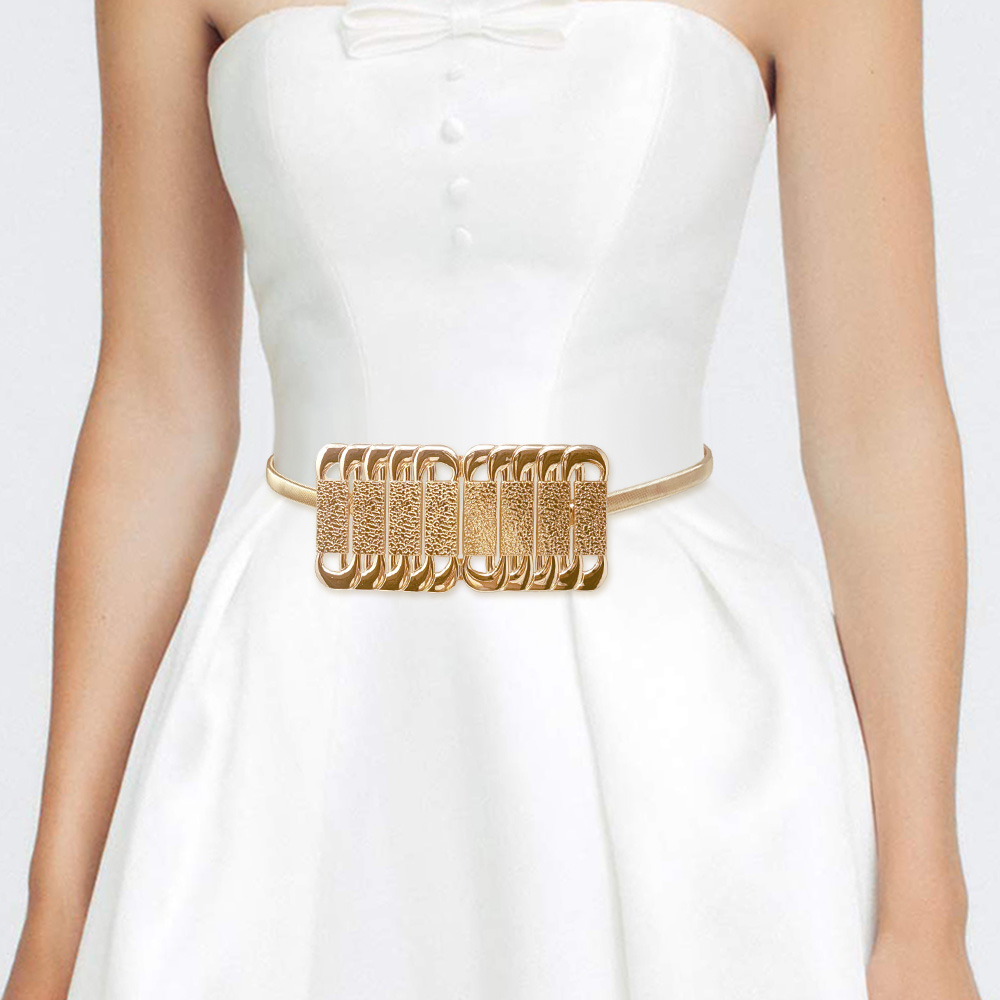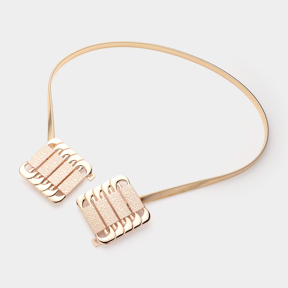 Abstract Metal Plate Buckle Accented Stretch Metal Belt