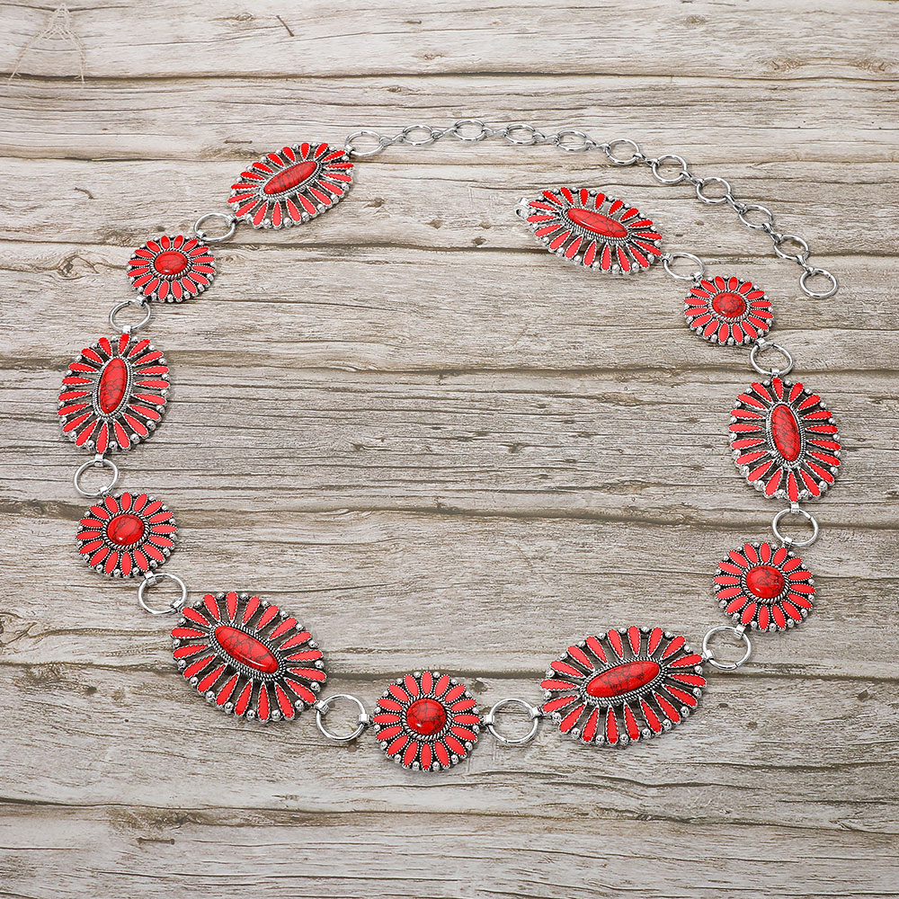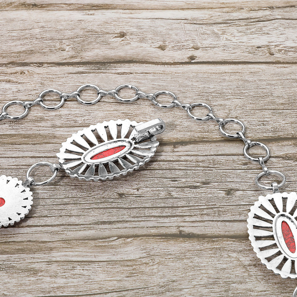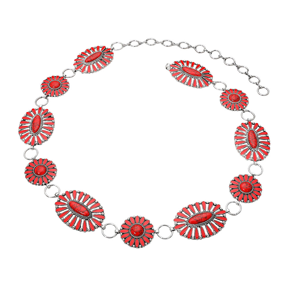 Boho Vintage Western Oval Round Stone Pointed Concho Chain Belt