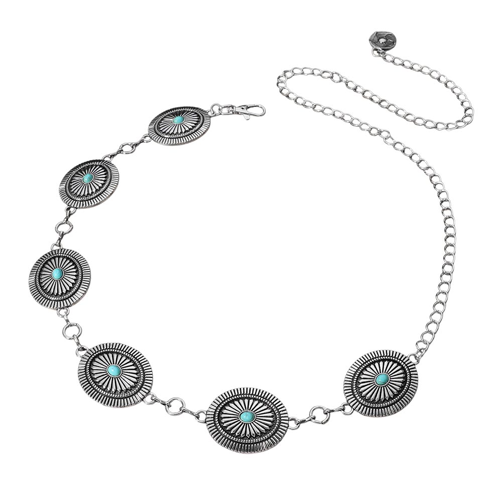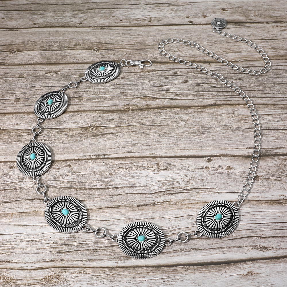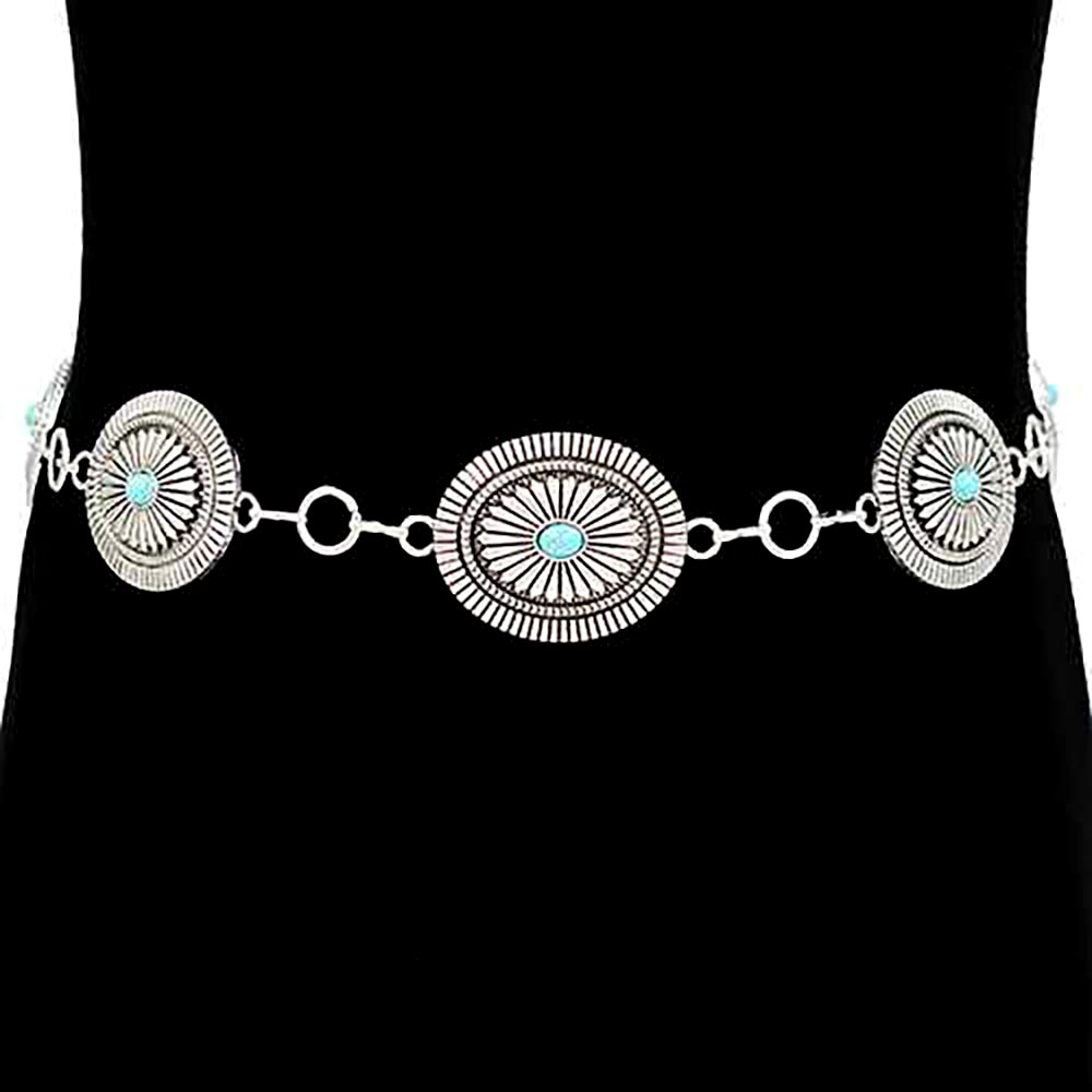 Boho Vintage Western Turquoise Stone Pointed Concho Chain Belt