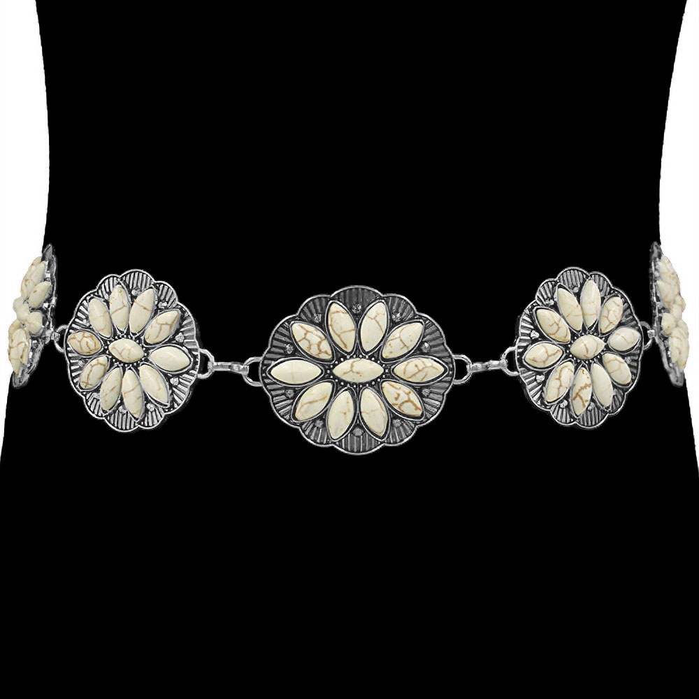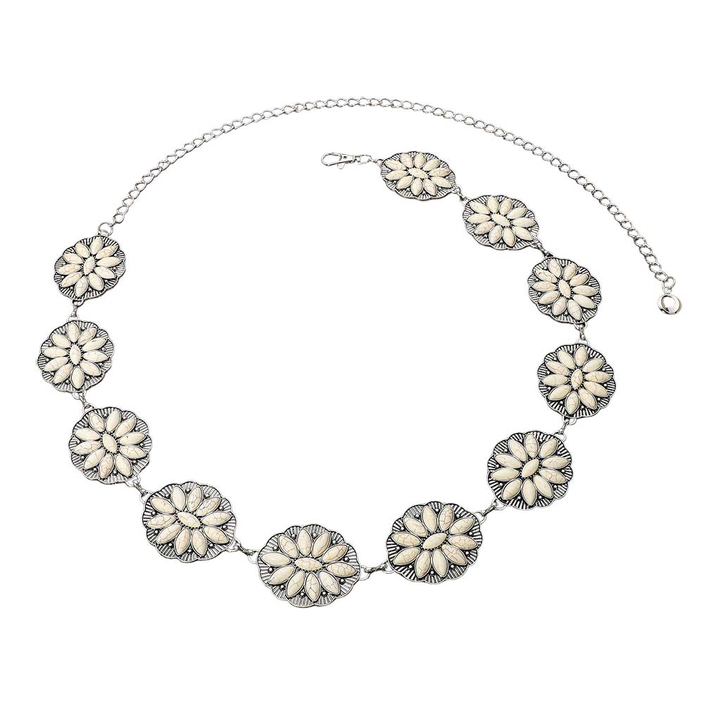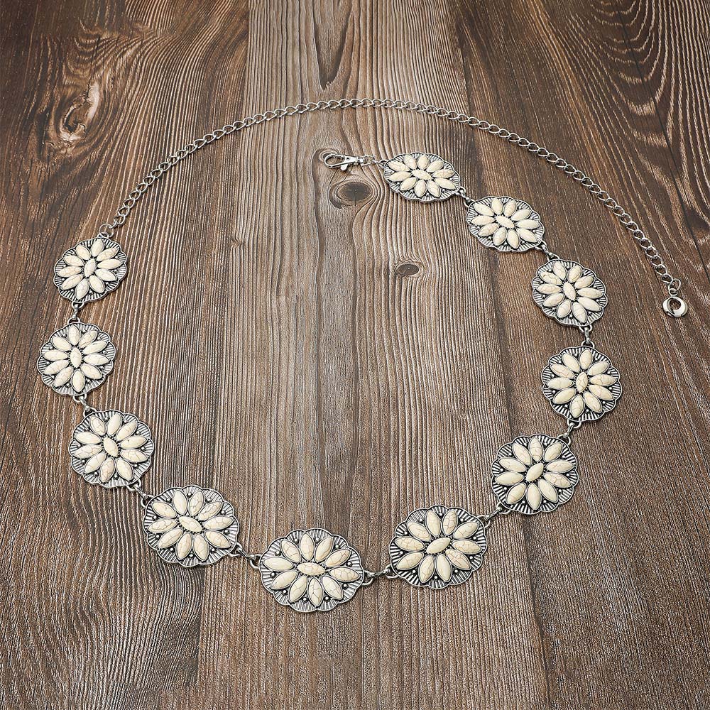 Boho Vintage Western Turquoise Stone Pointed Concho Chain Belt