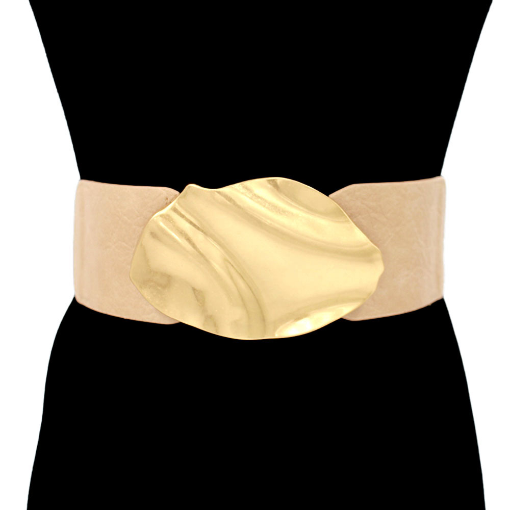 Bold Textured Metal Abstract Oval Buckle Accent Elastic Waist Belt