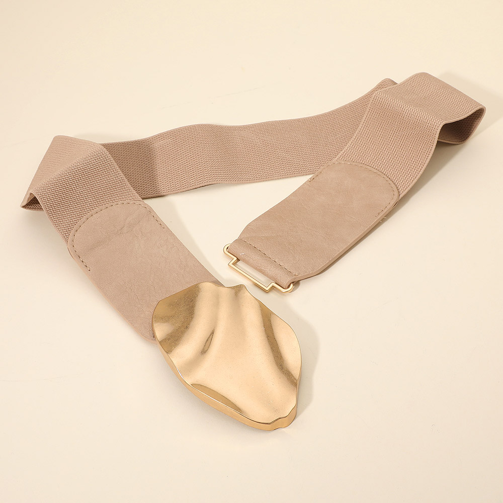 Details • Size : 2.8" H, 34" L • Stretchable • This abstract buckle wide waist belt makes a bold and artistic statement. Designed with a sculptural buckle and a sleek band, it adds a touch of modern sophistication to any outfit. Perfect for enhancing dresses or high-waist looks with a distinctive and elegant flair. • Lead and Nickel Compliant