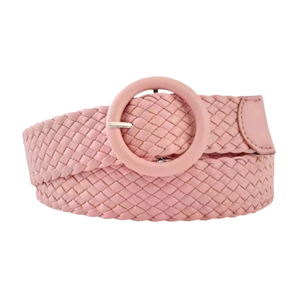 • Chic braided faux leather belt featuring a sleek round buckle. Perfect for adding texture and a polished finish to dresses, jeans, or skirts for both casual and refined looks.