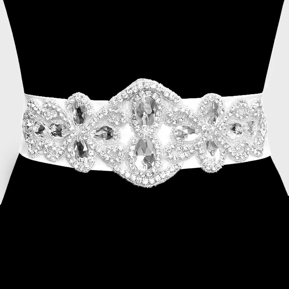 Bridal Wedding Crystal Bead Ribbon Belt / Headband