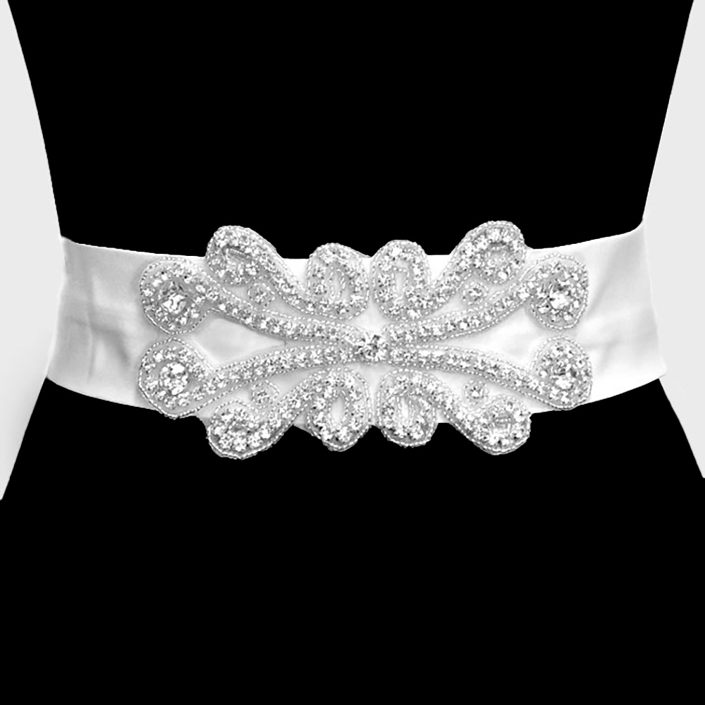 Marquise Stone Cluster Flower Point Sash Ribbon Bridal Wedding Belt / Headband