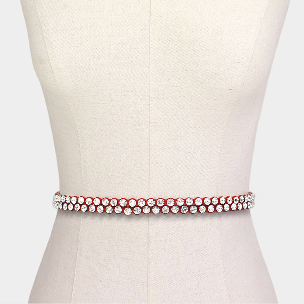 Crystal Embellished Faux Leather Belt