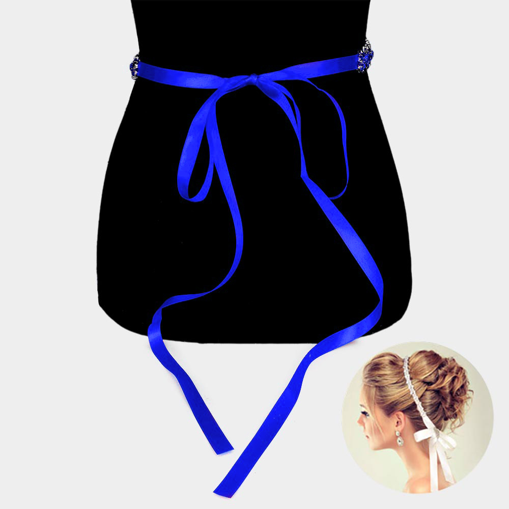 Crystal Marquise Floral Sash Ribbon Bridal Wedding Belt / Headband