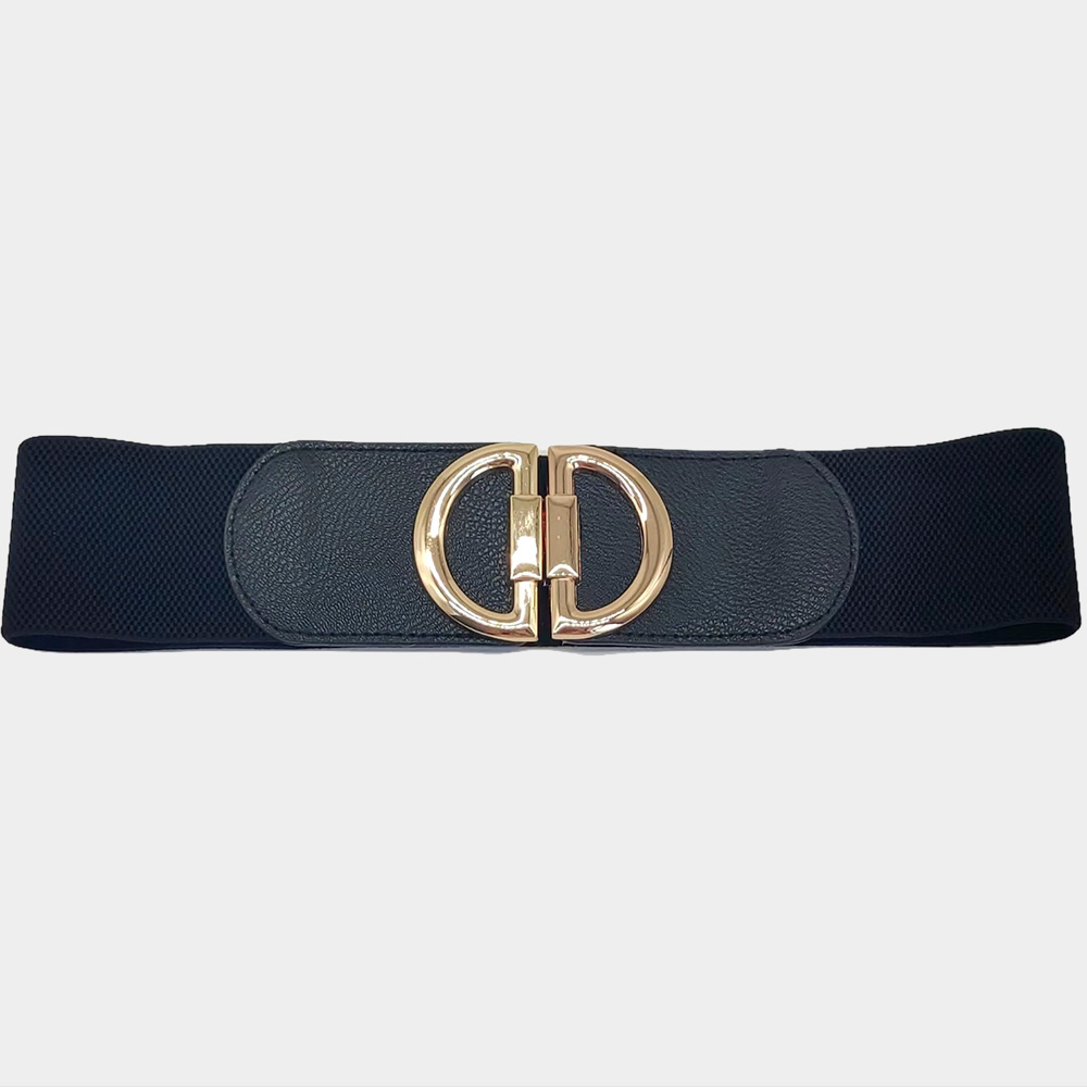 Double Half Open Circle Buckle Stretch Elastic Belt