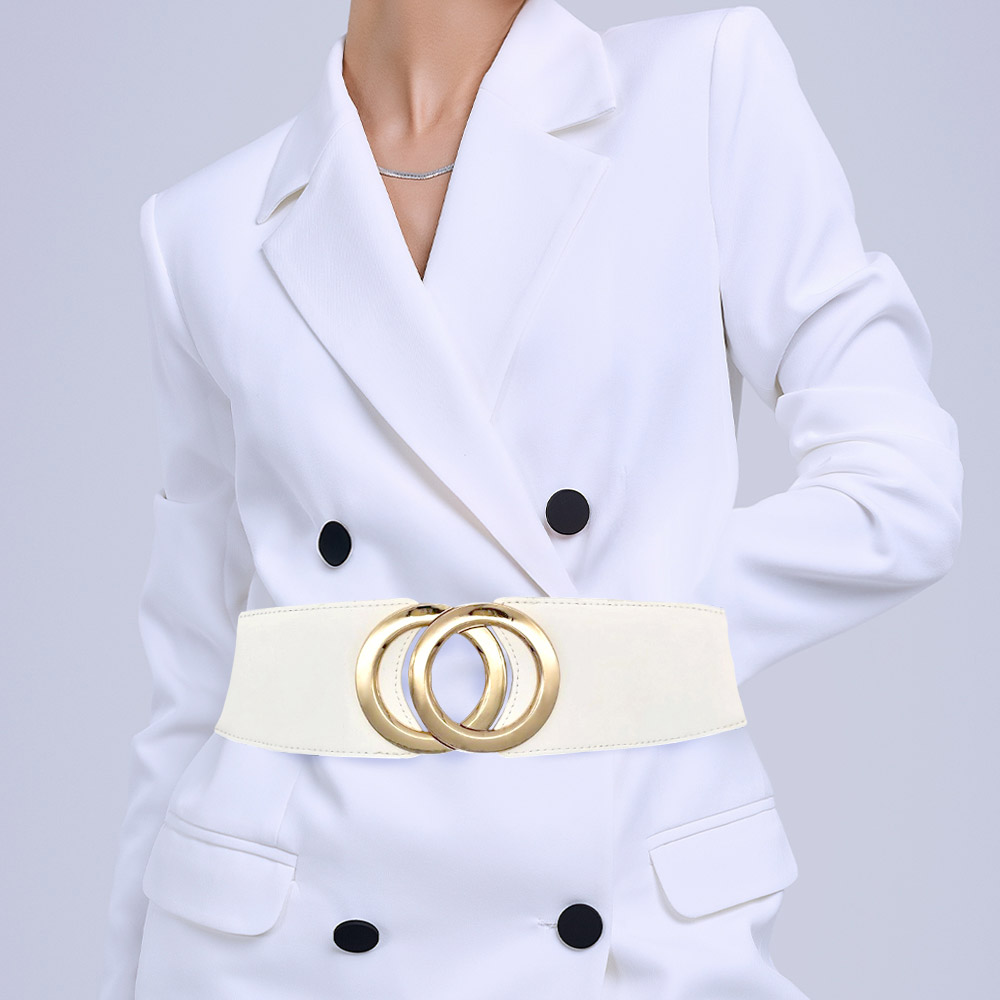 Double Metal Ring Buckle Accent Wide Elastic Waist Belt