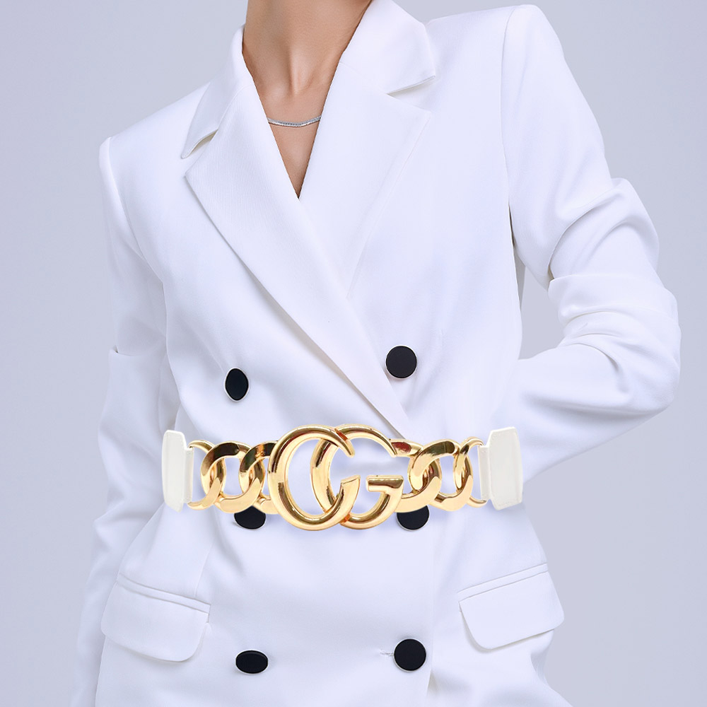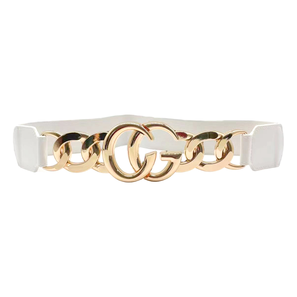 Double Metal Ring Chain Buckle Accent Elastic Waist Belt