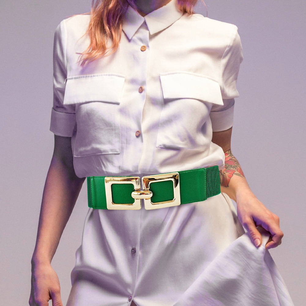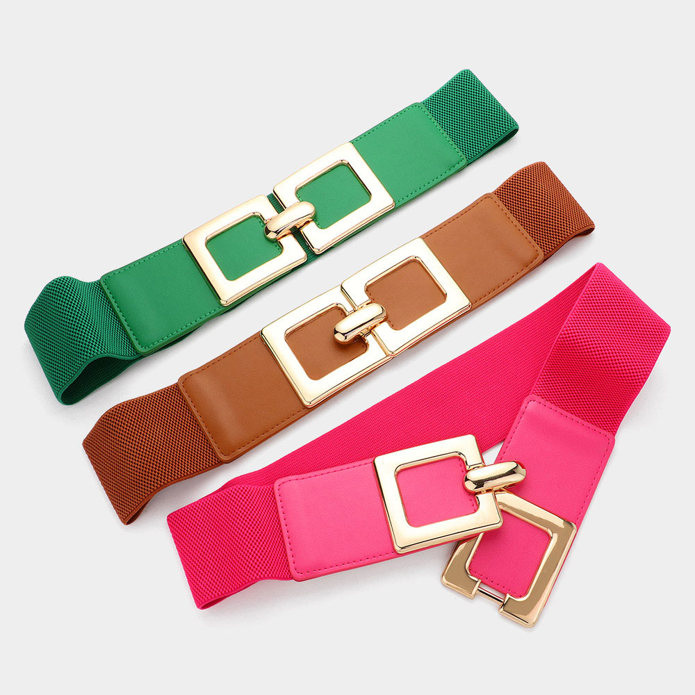 Double Metal Square Hook Buckle Pointed Elastic Belt