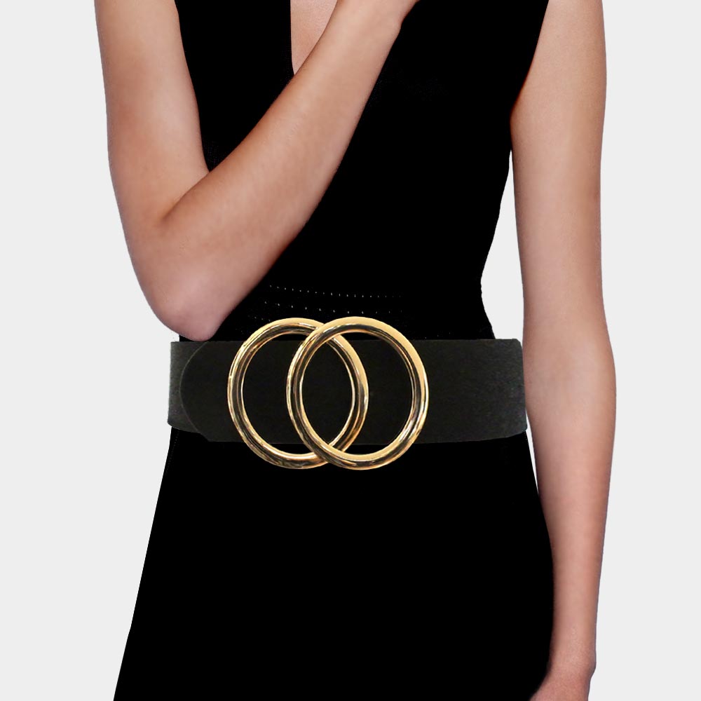 Double Open Metal Circle Buckle Accented Faux Leather Belt