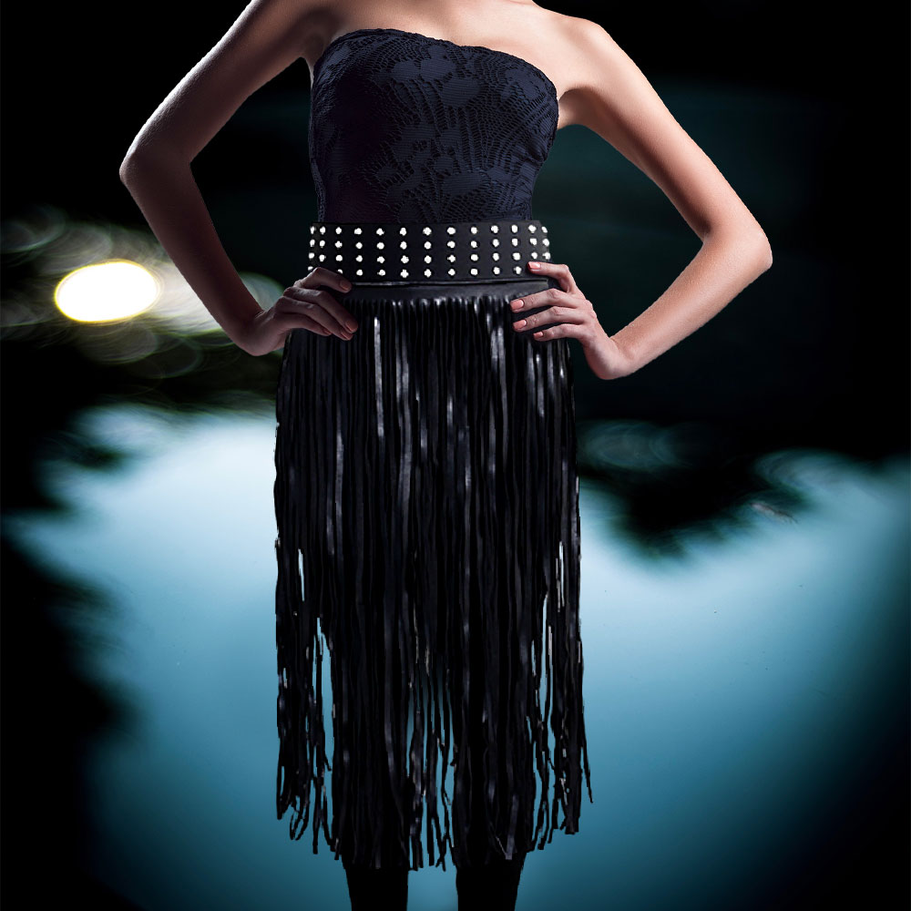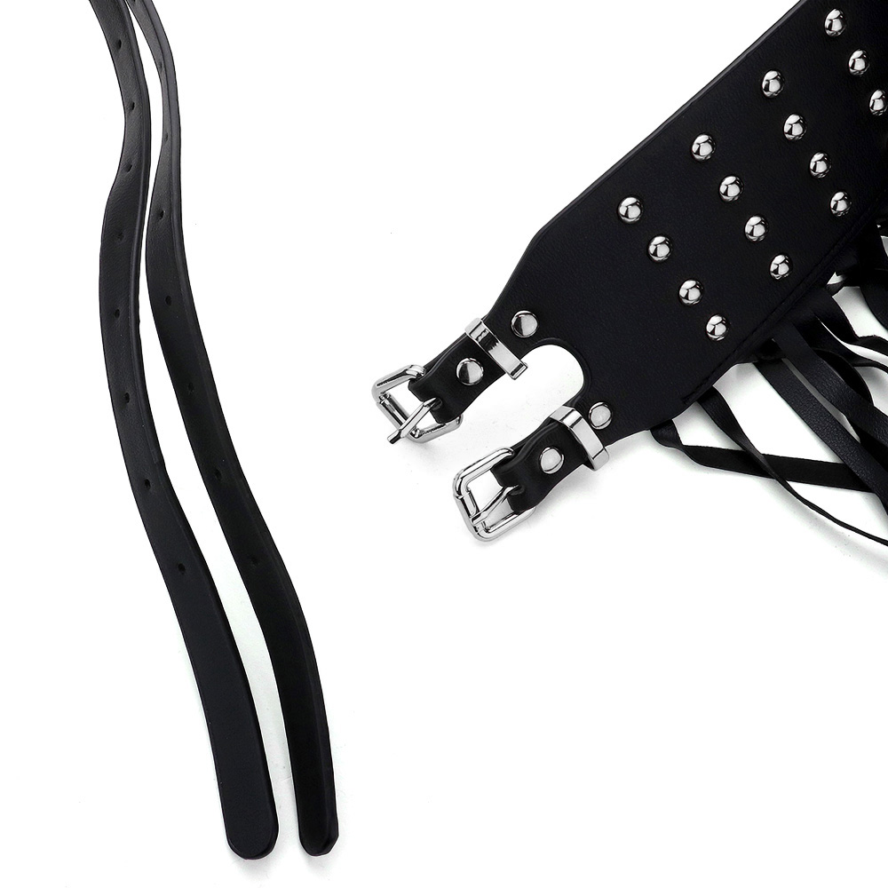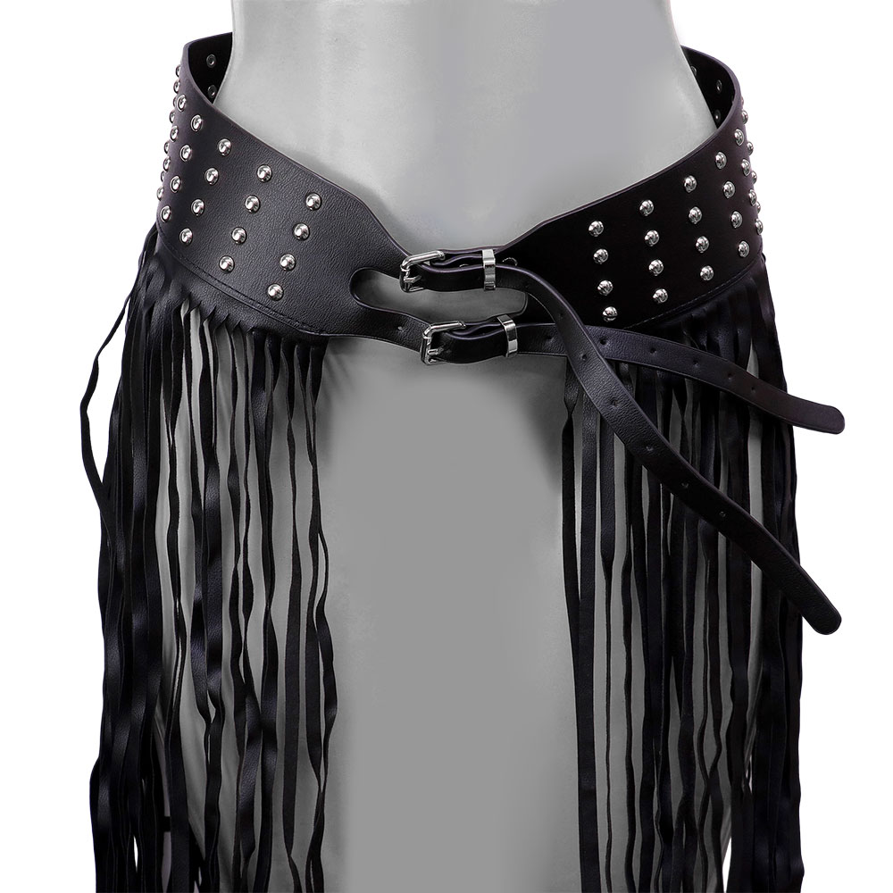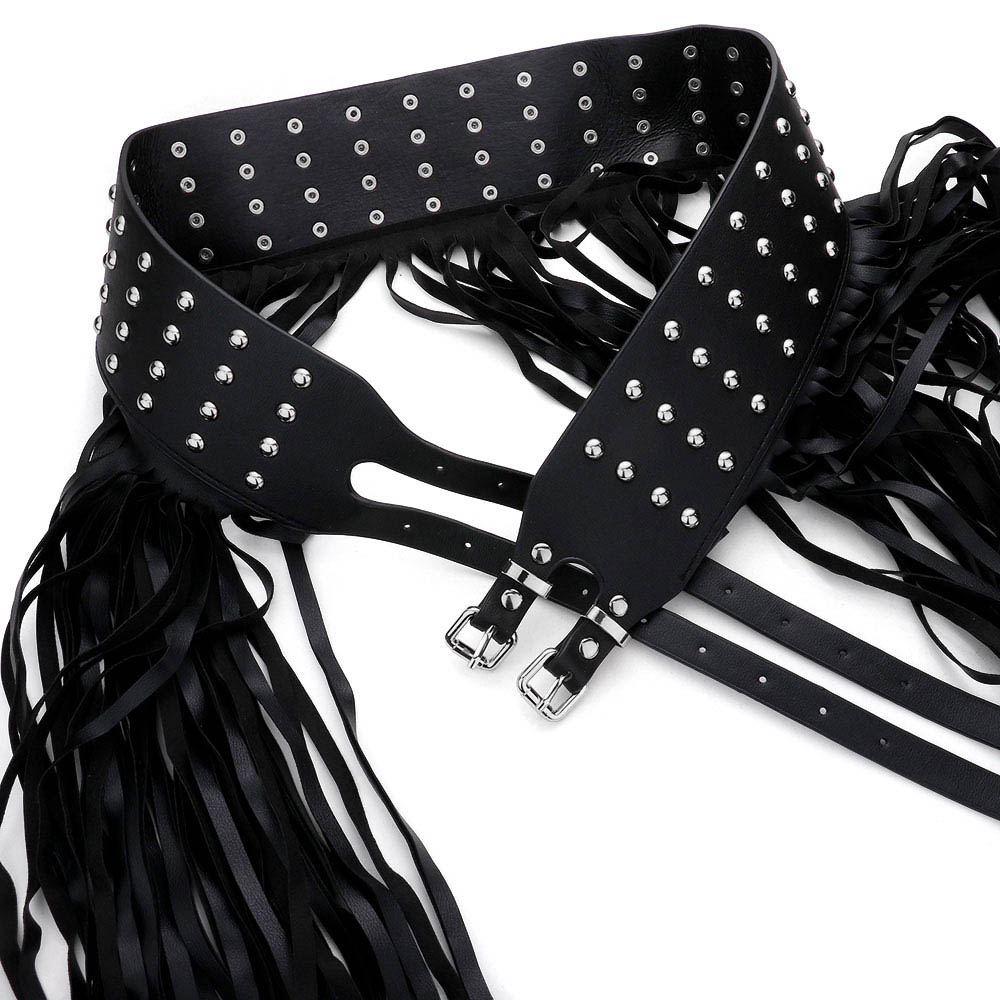 Faux Leather Fringe Stud Accented Over The Body Belt
