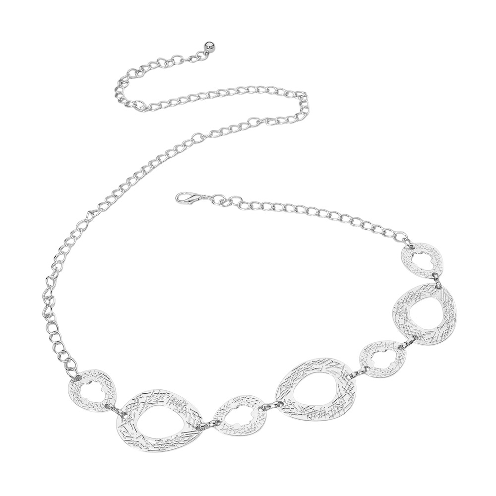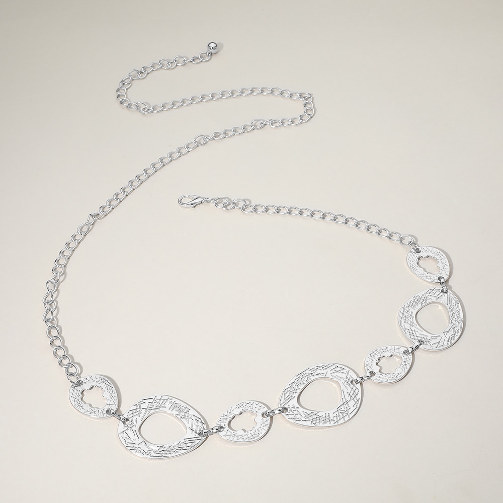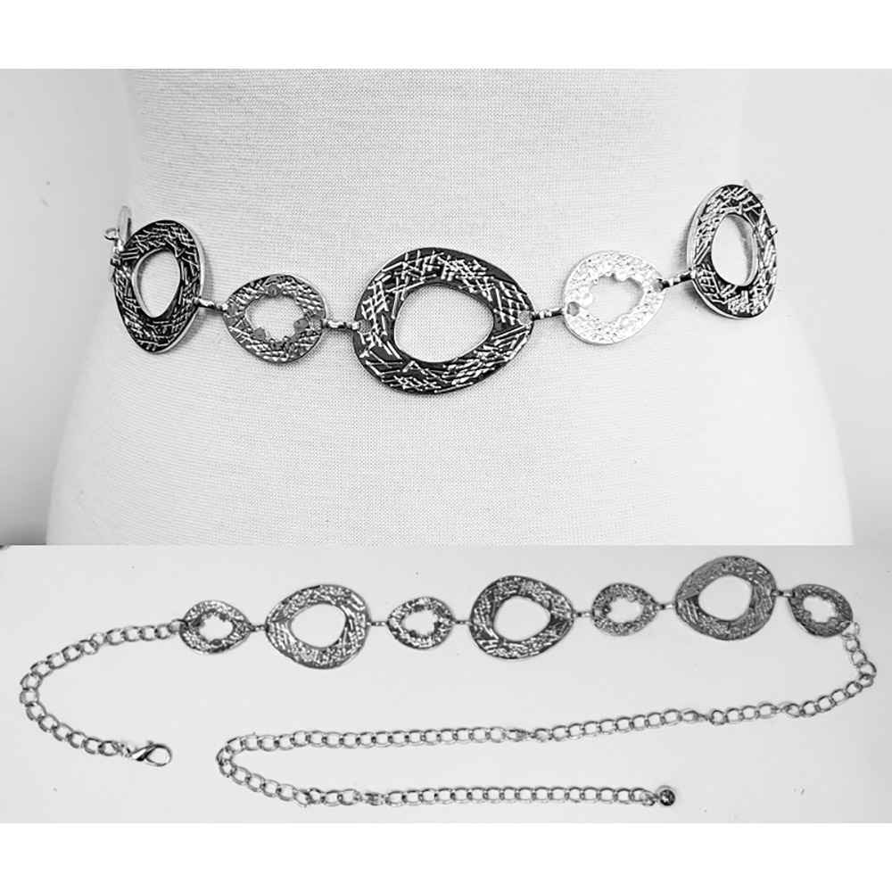 Hammered Metal Abstract Open Oval Link Chain Waist Belt