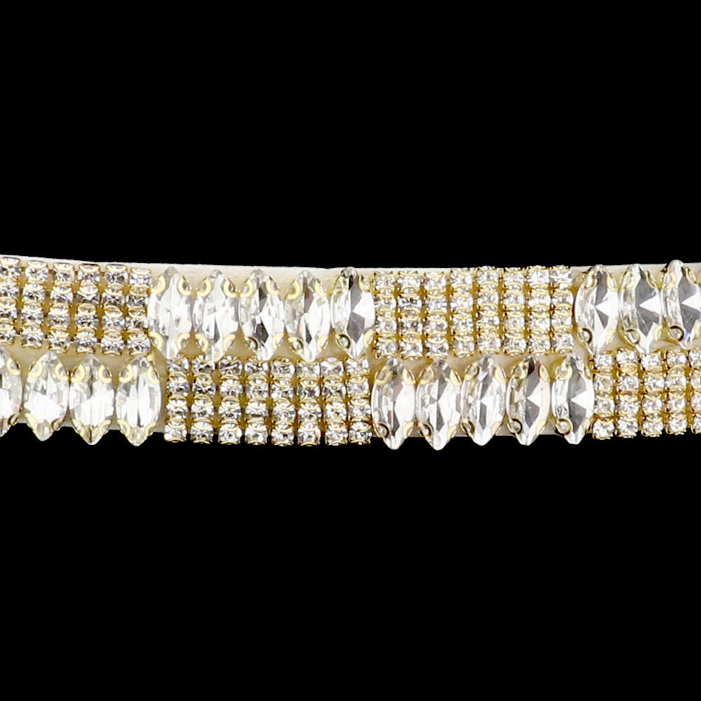 Marquise Stone Accented Sash Ribbon Bridal Wedding Belt / Headband