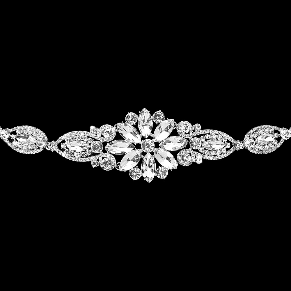 Marquise Stone Cluster Flower Point Sash Ribbon Bridal Wedding Belt / Headband