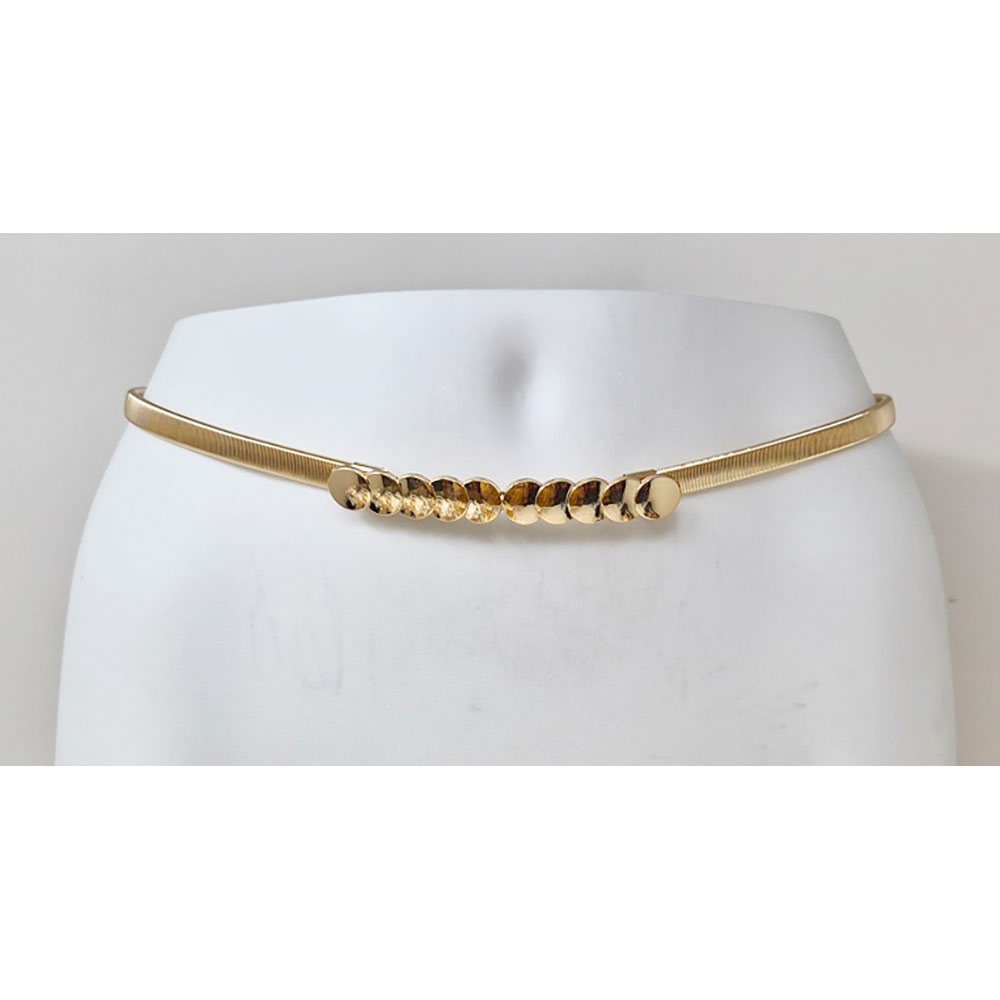 • Define your look with this elegant waist belt featuring a sleek strap and a row of polished bead accents. Perfect for complementing dresses, evening gowns, or formal outfits, this refined accessory adds a sophisticated touch, making it ideal for weddings, parties, or special occasions.