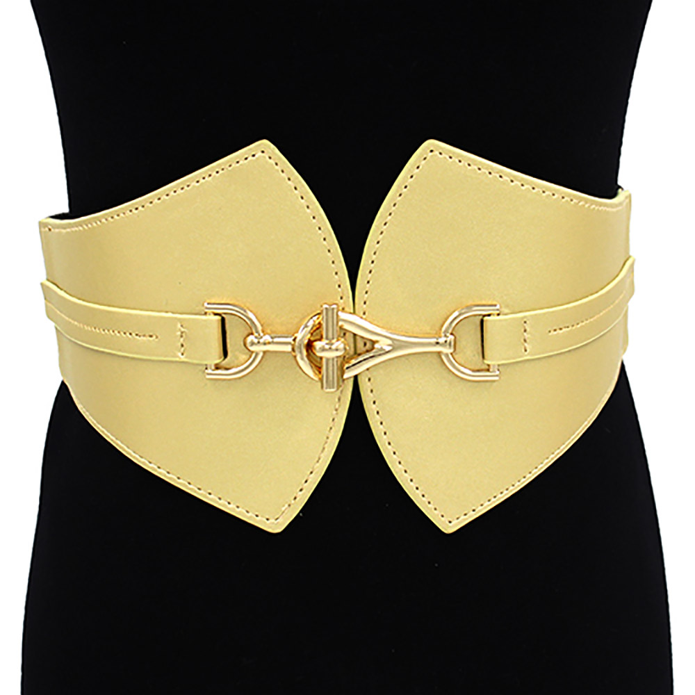 • Sophisticated wide corset style belt featuring a sleek design with a decorative hook buckle. Perfect for enhancing dresses, blouses, or evening outfits, this chic accessory cinches the waist beautifully while adding a refined and stylish finishing touch.