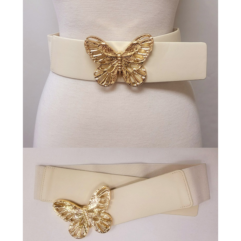 Metal Cutout Butterfly Buckle Accented Elastic Belt