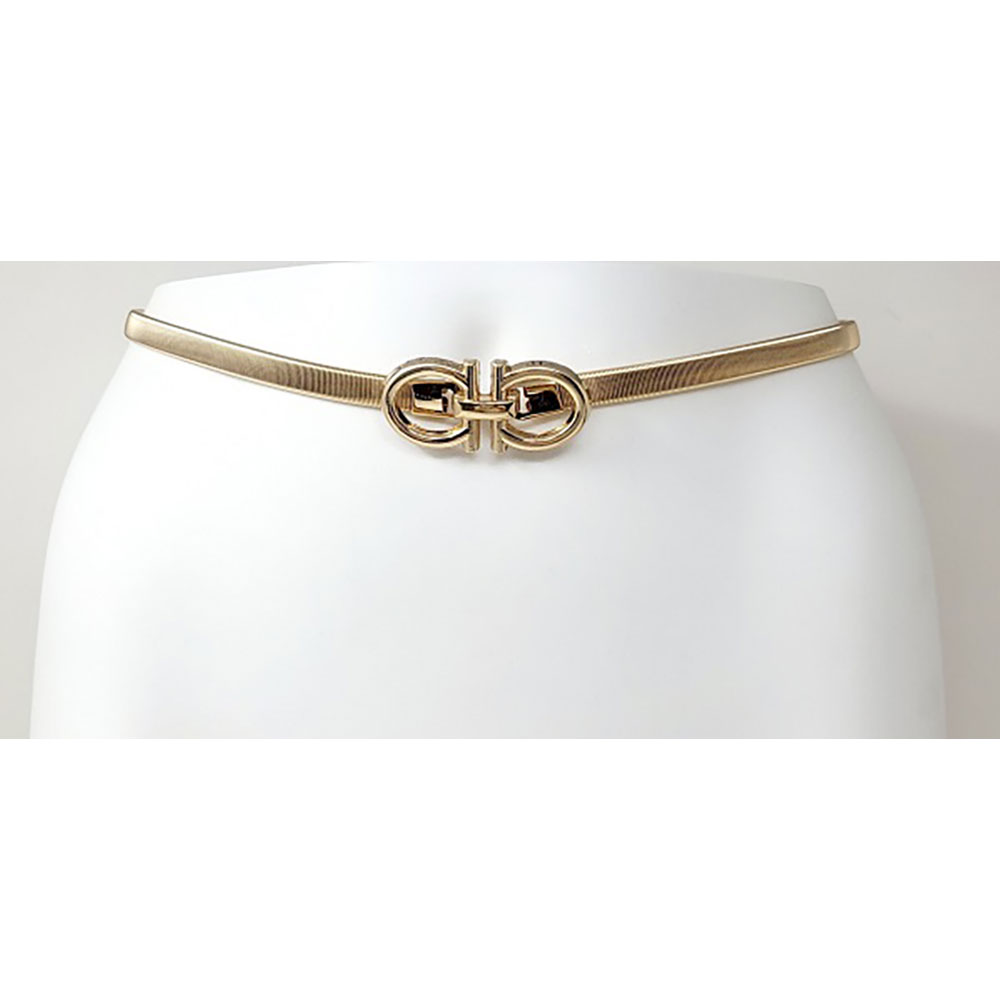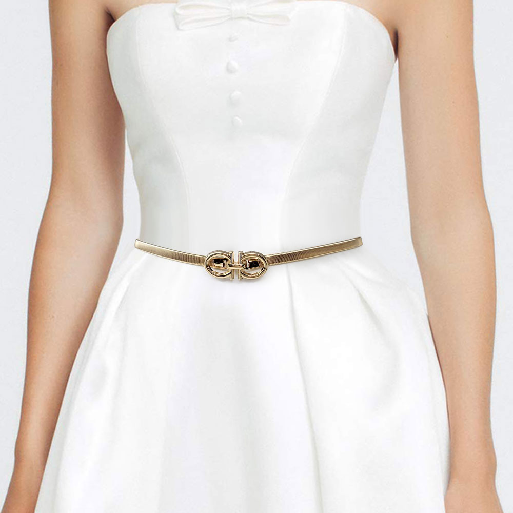 Details • Size : 1" H, appx 27" L • Stretchable • Hook Closure • Refine your look with this slim waist belt featuring a sleek double loop buckle. Perfect for pairing with dresses, skirts, or trousers, it adds a modern and polished touch while enhancing your silhouette. A versatile accessory that transitions effortlessly from casual outfits to formal occasions. • Lead and Nickel Compliant