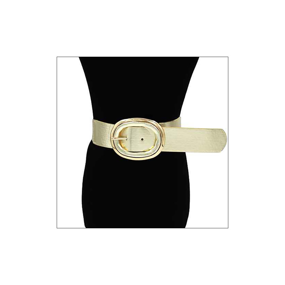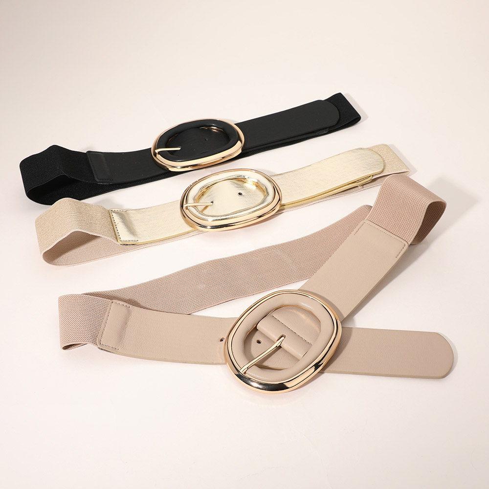 Metal Faux Leather Oval Buckle Accented Wide Elastic Waist Belt