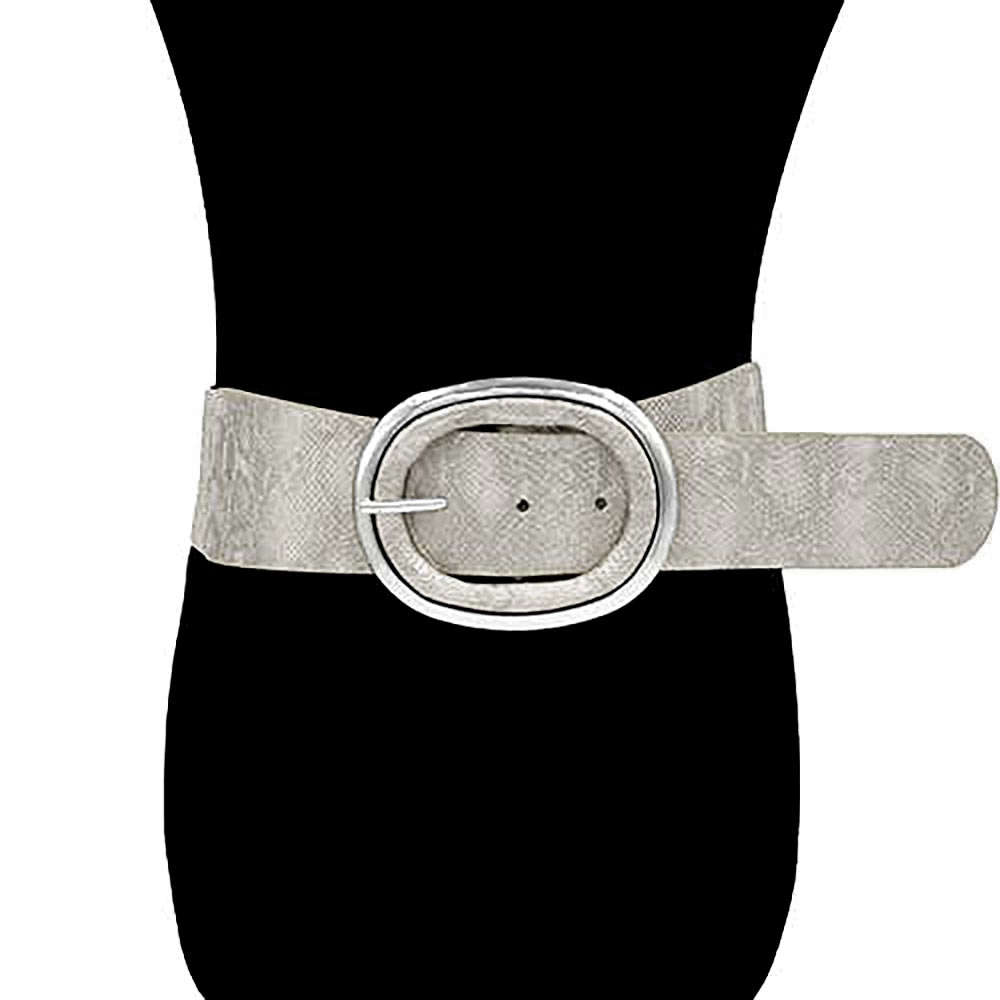 Metal Oval Buckle Accent Wide Snake Print Elastic Waist Belt