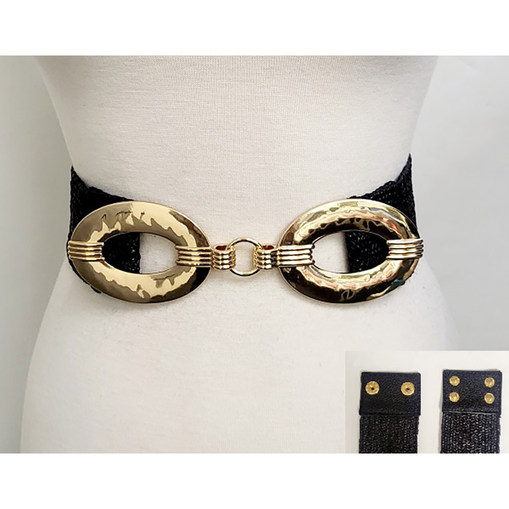 Details • Size : 2.4" H, 33" + 1" L • Stretchable • Make a bold fashion statement with this wide stretch waist belt featuring an eye-catching oval buckle. Perfect for accentuating your waist and adding flair to dresses, tunics, or jumpsuits. Comfortable elastic design with secure snap closure for all-day wear. • Lead and Nickel Compliant