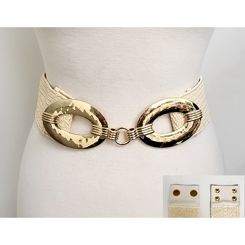 Details • Size : 2.4" H, 33" + 1" L • Stretchable • Make a bold fashion statement with this wide stretch waist belt featuring an eye-catching oval buckle. Perfect for accentuating your waist and adding flair to dresses, tunics, or jumpsuits. Comfortable elastic design with secure snap closure for all-day wear. • Lead and Nickel Compliant
