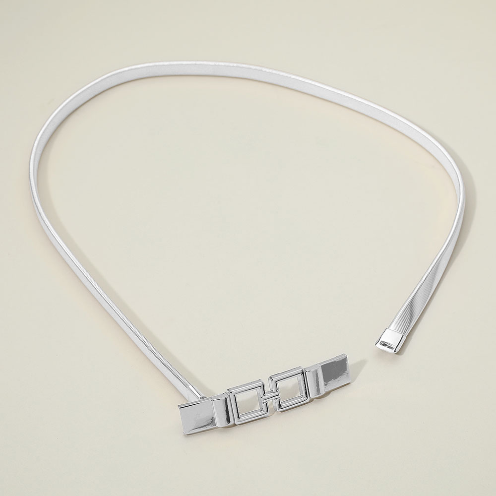 Open Double Square Metal Buckle Accent Slim Stretch Belt Open Double Square Metal Buckle Accent Slim Stretch Belt Open Double Square Metal Buckle Accent Slim Stretch Belt