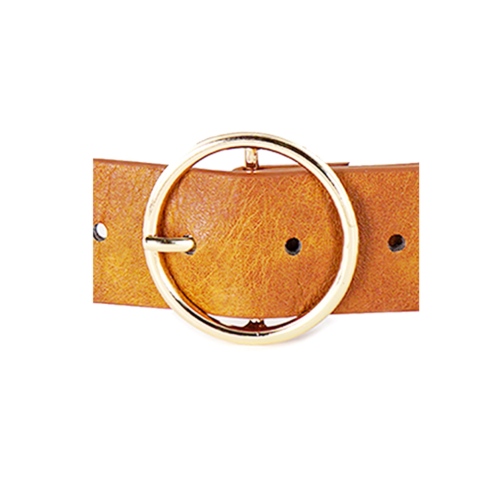 Open Metal Circle Buckle Faux Leather Belt