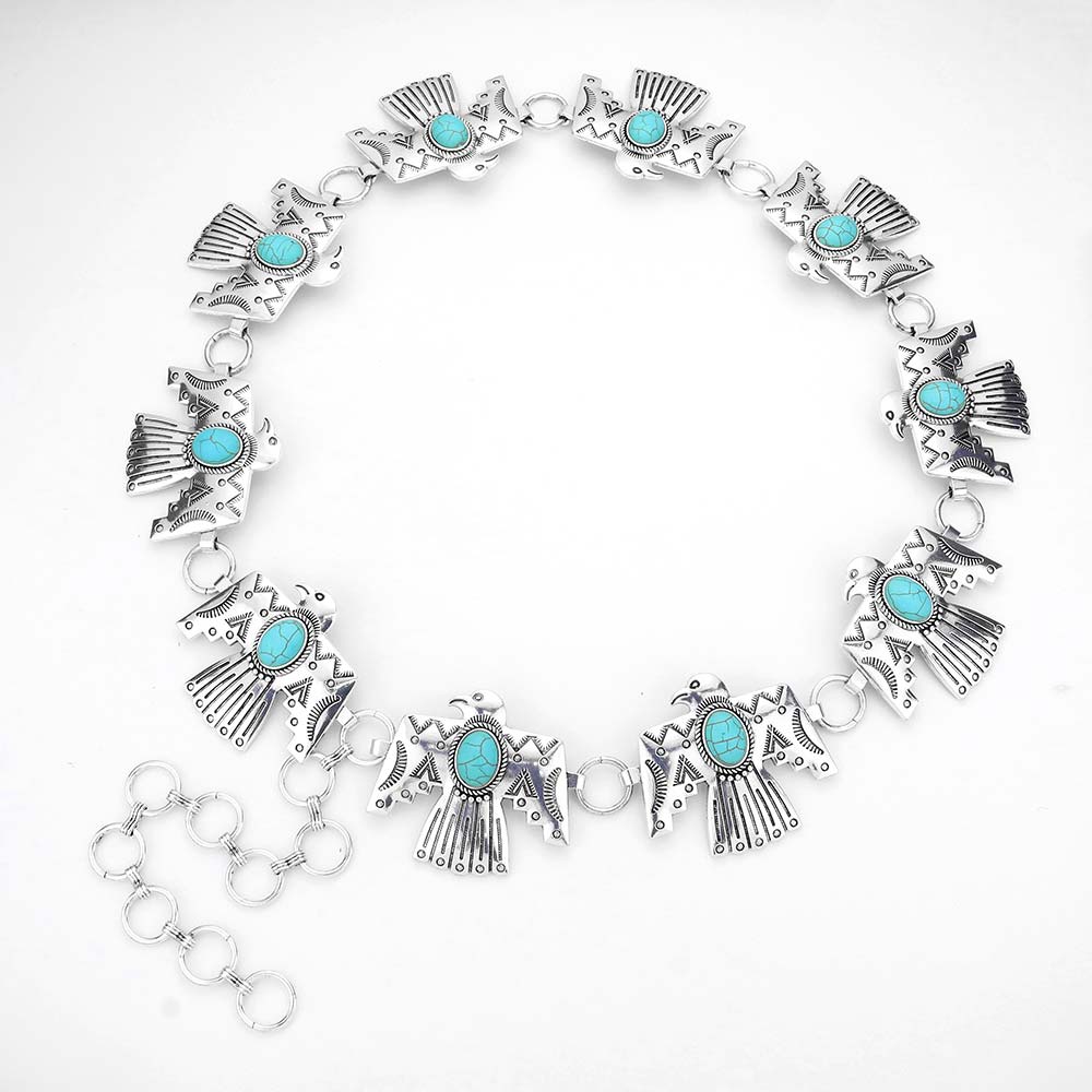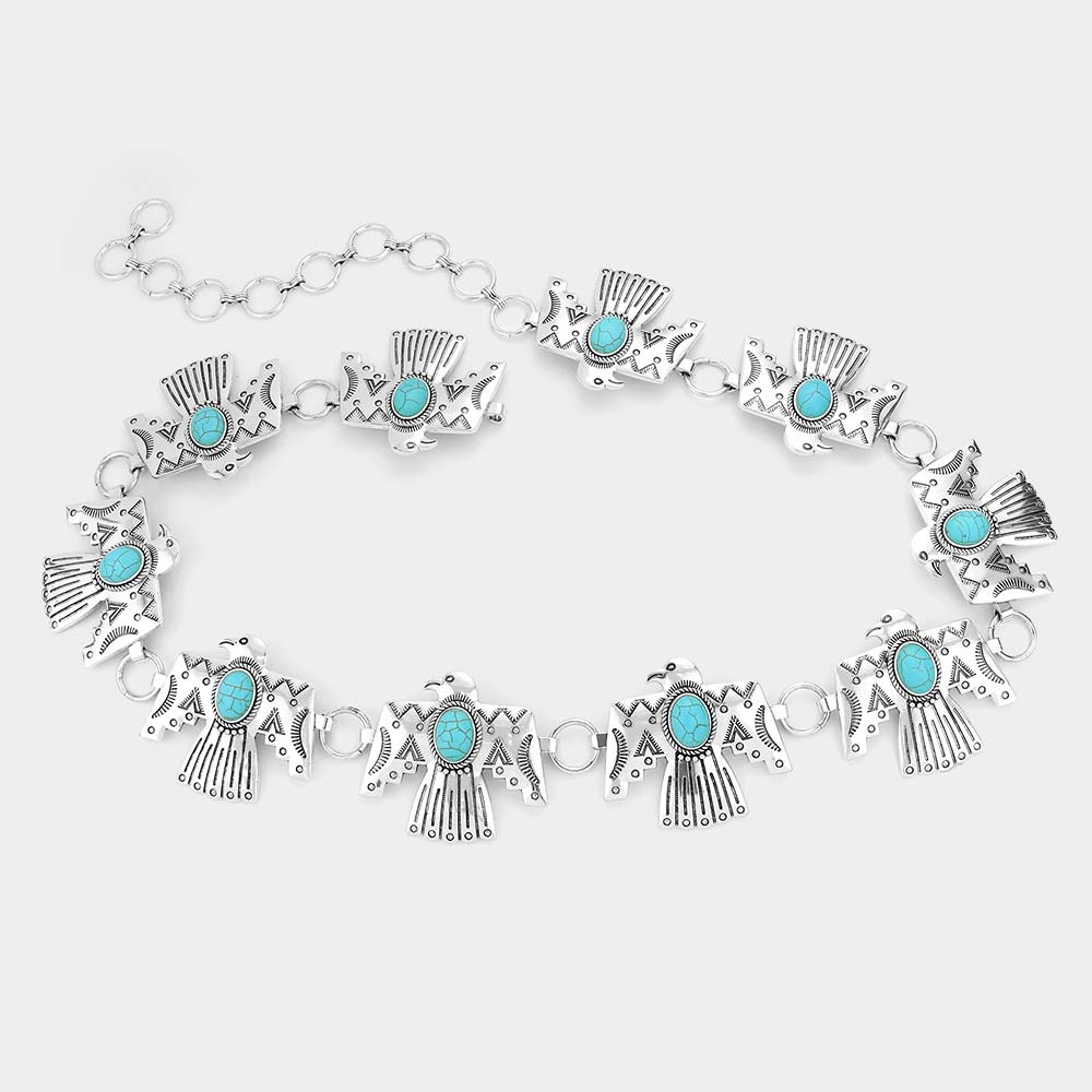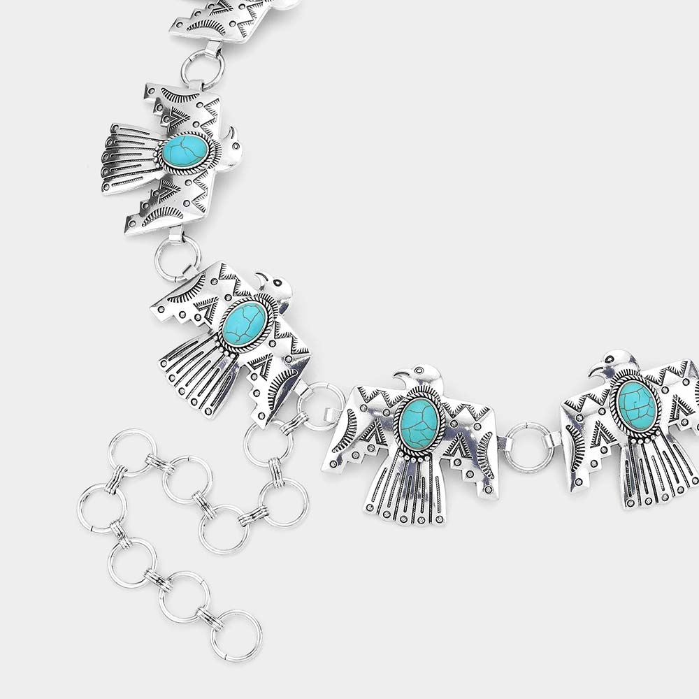 Double Round Turquoise Accented Antique Metal Pendant Necklace