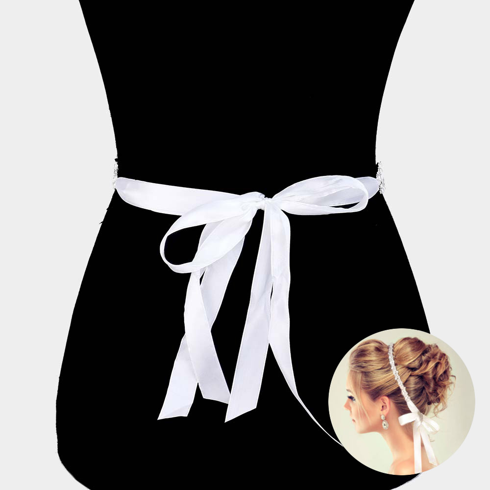 Oval Pearl Sash Ribbon Bridal Wedding Belt / Headband