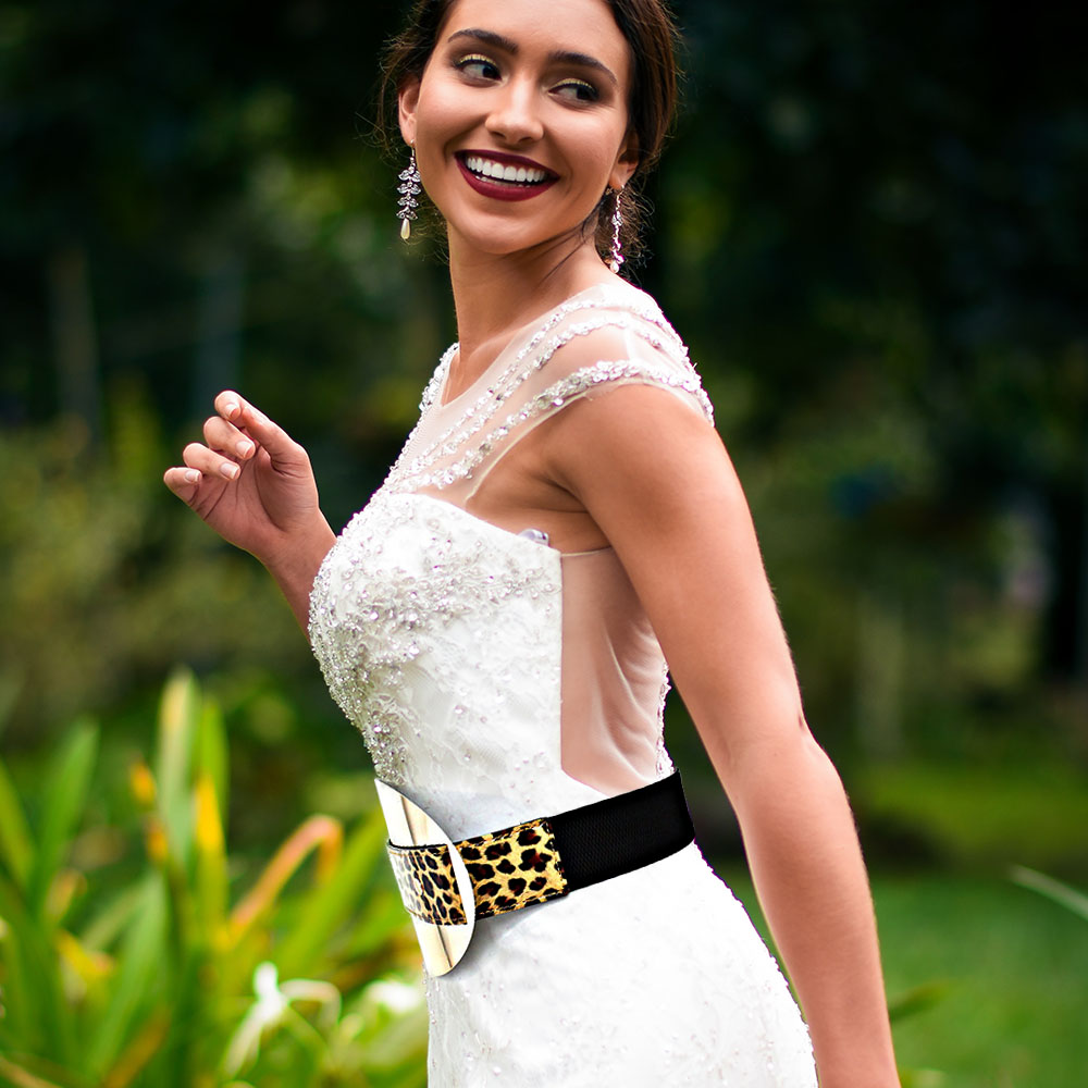 Oversized Leopard Rectangular Oval Elastic Stretchable Belt
