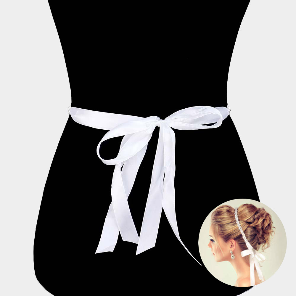Pearl Embellished Sash Ribbon Bridal Wedding Belt / Headband