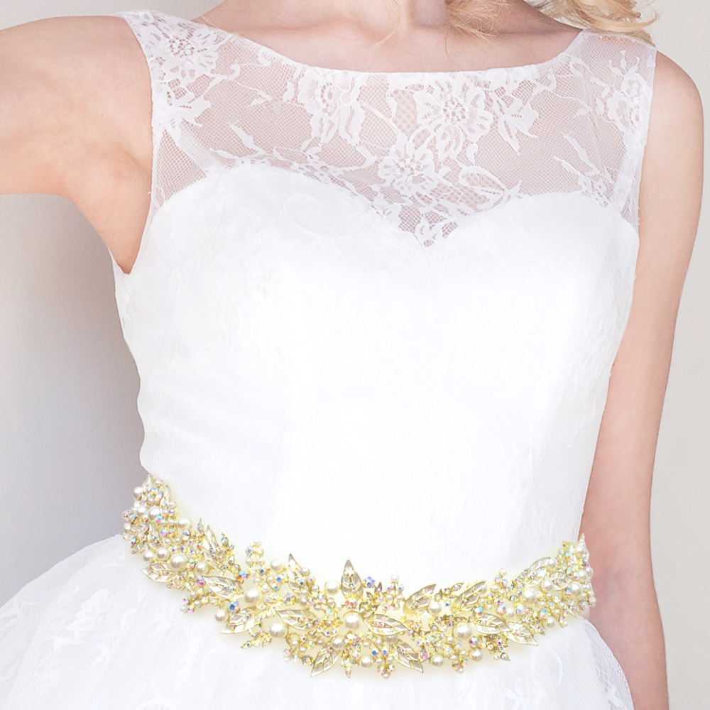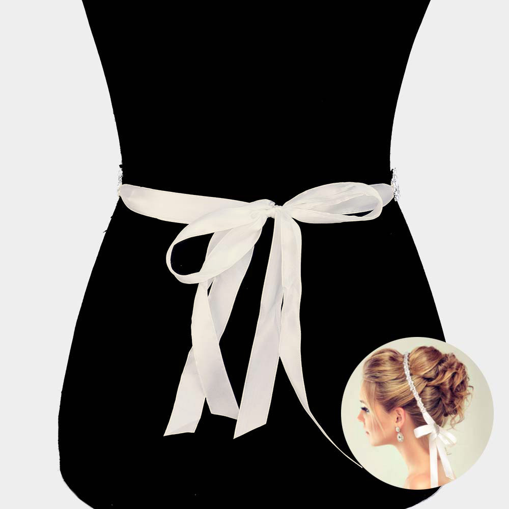 Pearl Rhinestone Floral Sash Ribbon Bridal Wedding Belt / Headband