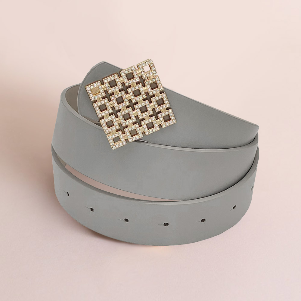 Rhinestone Embellished Square Cluster Buckle Faux Leather Belt