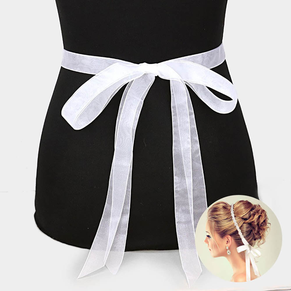 Rhinestone Flower Sash Ribbon Bridal Wedding Belt / Headband