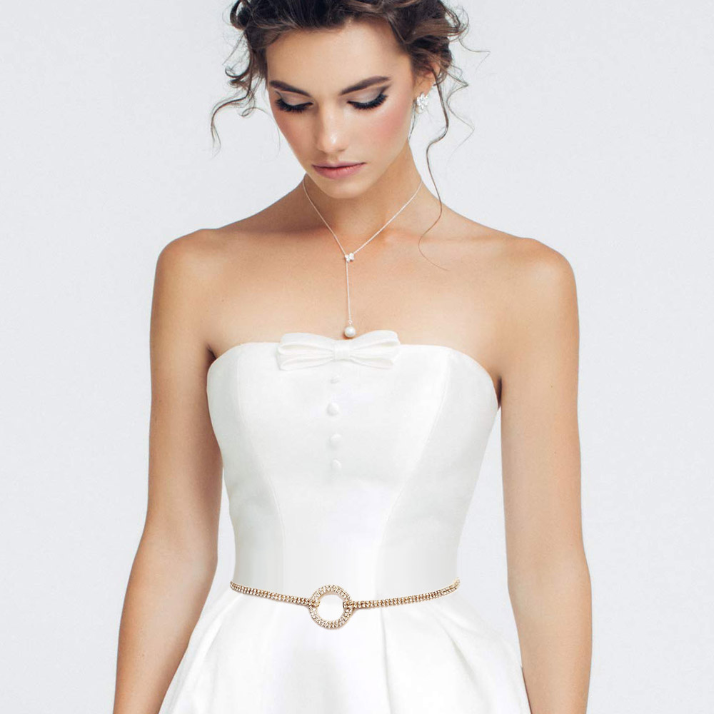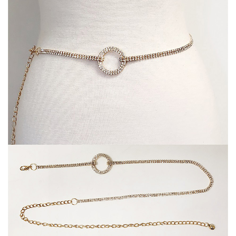 Rhinestone Paved Open O Ring Pointed Chain Belt