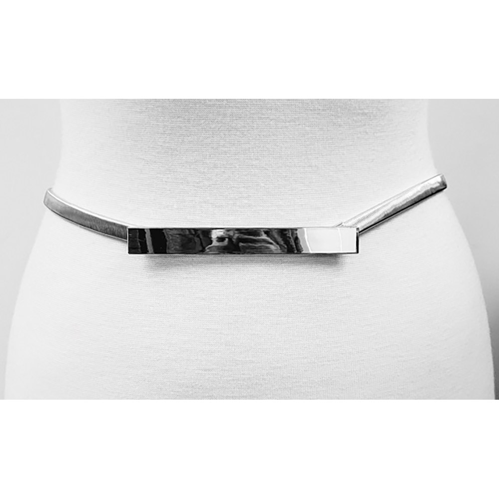 Sleek Bar Buckle Accented Stretch Metal Waist Belt