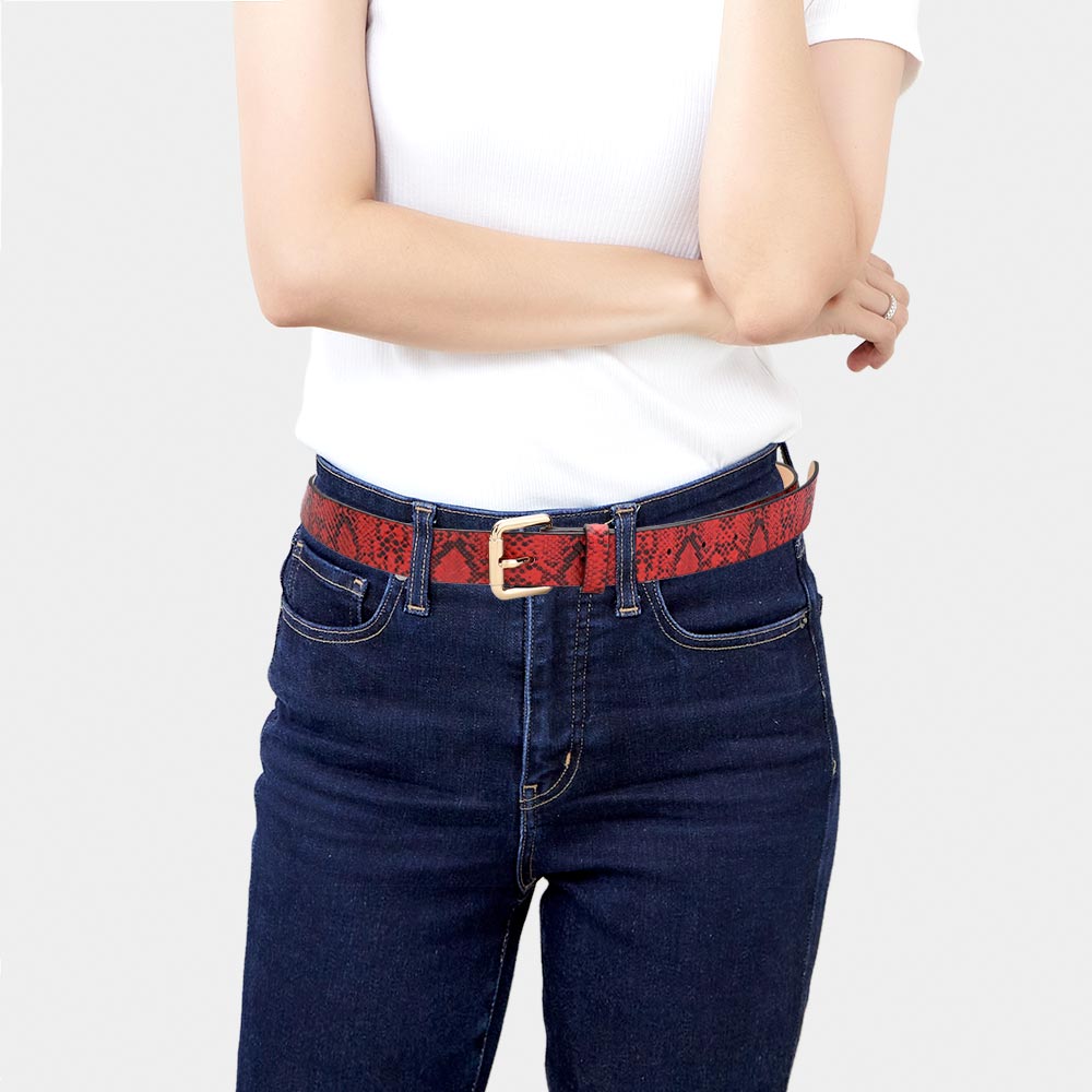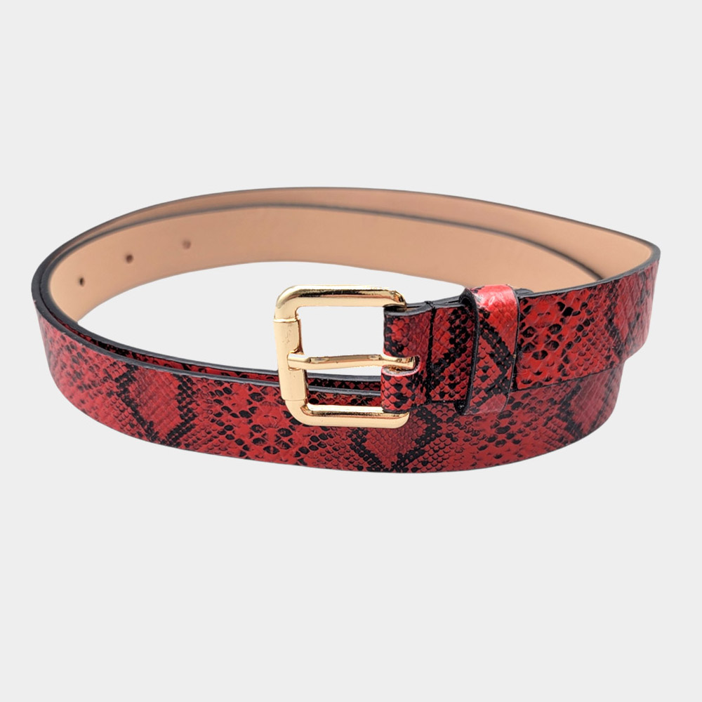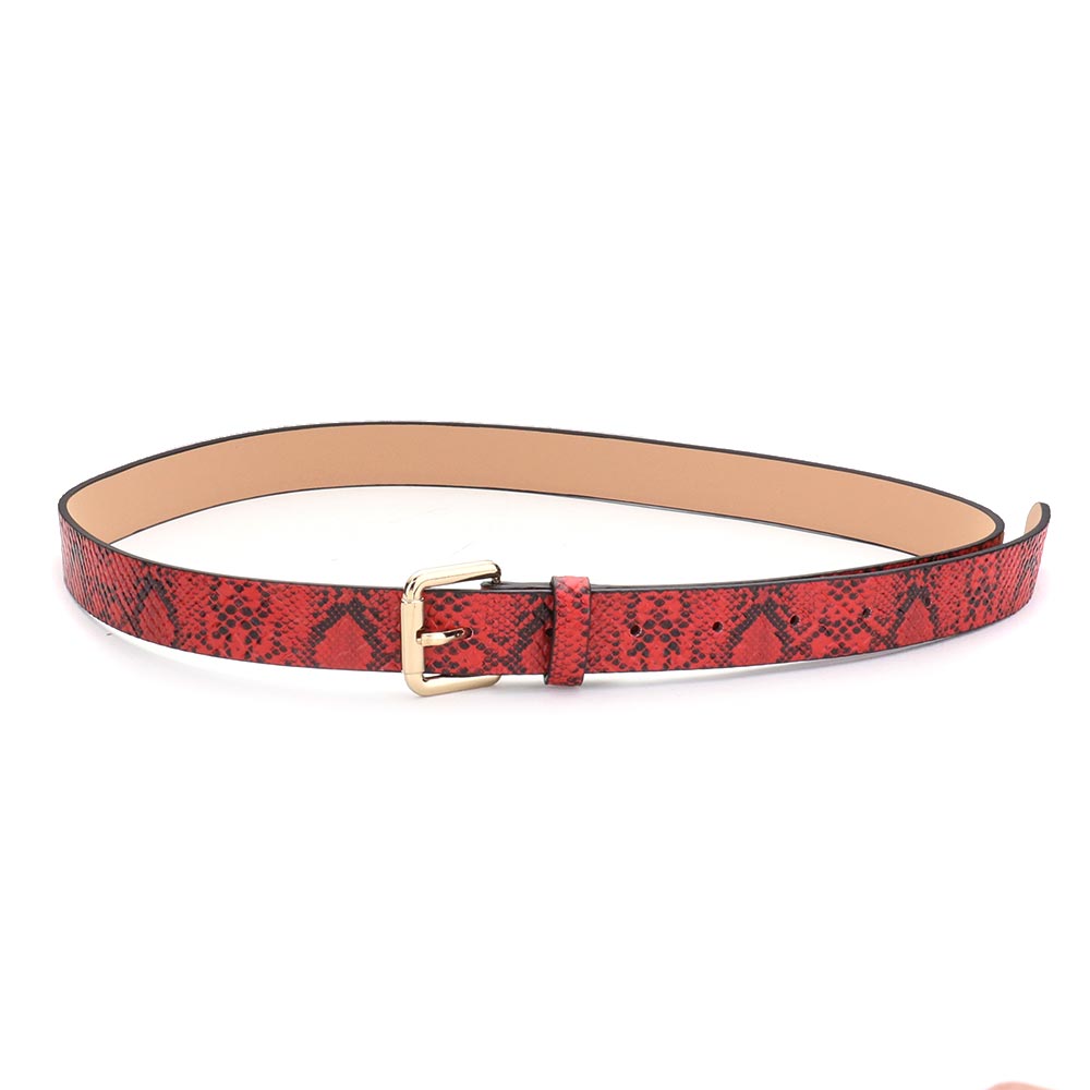 Metal Oval Buckle Accent Wide Snake Print Elastic Waist Belt