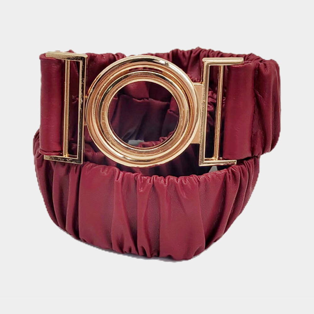 Solid Pleated Faux Leather Scrunch Stretch Elastic Belt