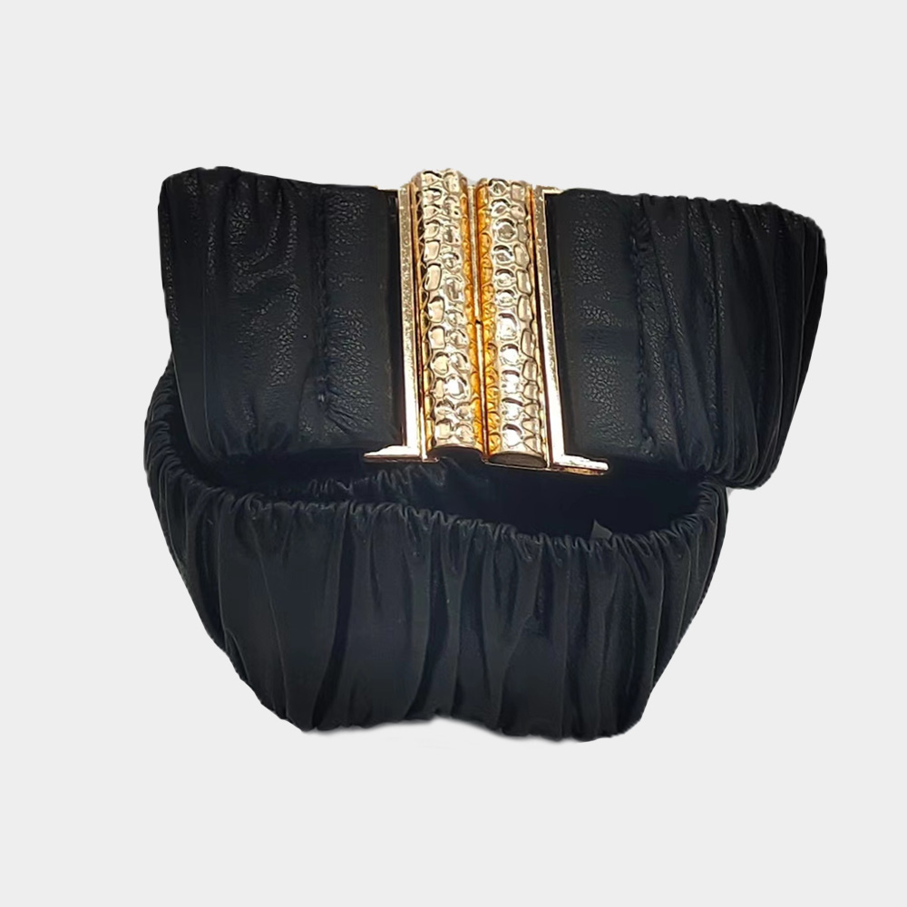 Solid Pleated Faux Leather Scrunch Stretch Elastic Belt
