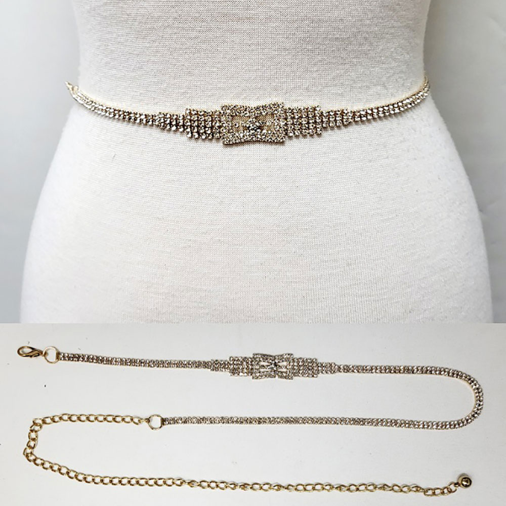 Stone Paved Belt Buckle Pointed Rhinestone Chain Waist Belt