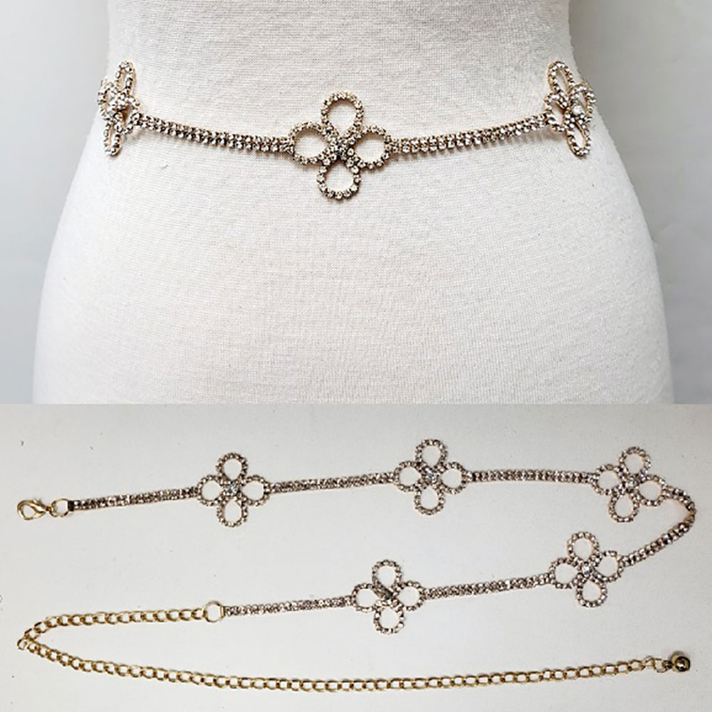 Stone Paved Flower Link Pointed Rhinestone Chain Waist Belt