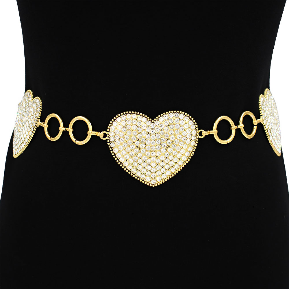 Stone Paved Heart Link Concho Chain Belt