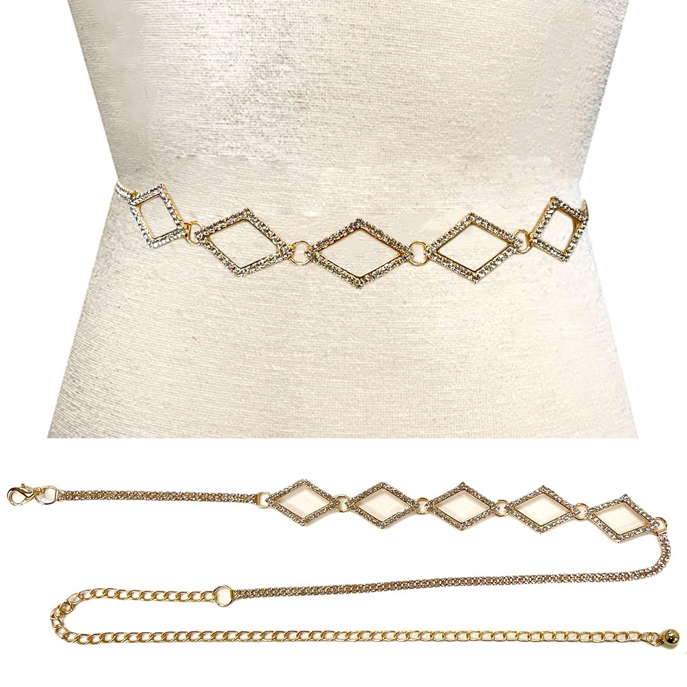 Stone Paved Open Diamond Link Pointed Rhinestone Chain Waist Belt