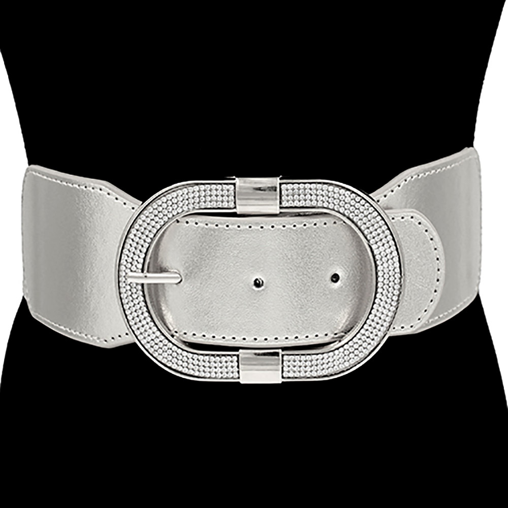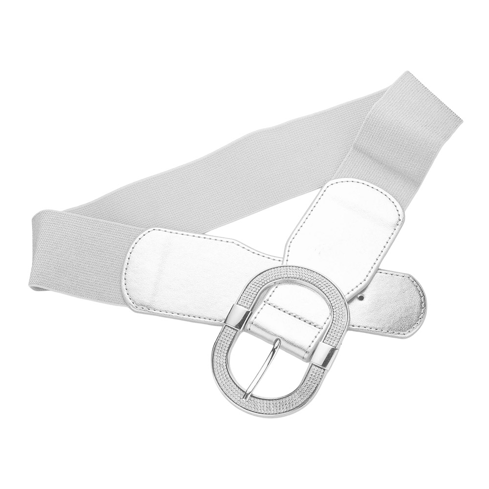 Stone Paved Open Oval Buckle Accented Elastic Belt